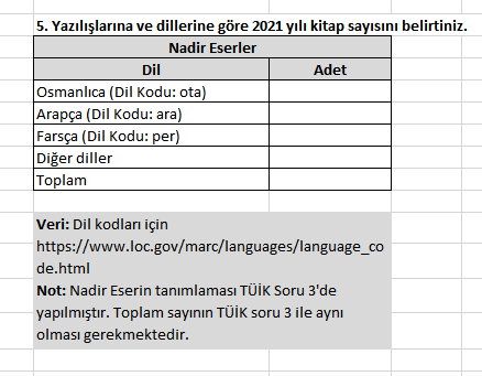 Merhabalar. Dil ile ilgili istatistikleri çekerken Kazım beyin ifade etmiş olduğu “Marc 008 -35-37” alanını kullandığımızda aşağıda Marc’tan örnek olarak almış olduğum dil girişlerini yaptıktan sonra veriyi nasıl tekilleştireceğiz? (https://www.loc.gov/marc/languages/language_code.html) eng English enm English, Middle (1100-1500) frm French, Middle (ca. 1300-1600) fro French, Old (ca. 842-1300) gmh German, Middle High (ca. 1050-1500) goh German, Old High (ca. 750-1050) grc Greek, Ancient (to 1453) gre Greek, Modern (1453-) nno Norwegian (Nynorsk) nob Norwegian (Bokmål) peo Old Persian (ca. 600-400 B.C.) per Persian Ayrıca birden fazla dil ile yazılmış kayıtları dilleri ifade ederek “Marc’ın 008 -35-37” alanından nasıl çekeceğiz.? Acaba Marc’taki “041–a” alından… Daha fazla oku »