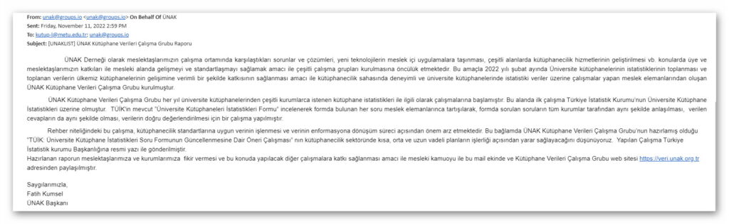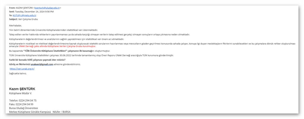 ÜNAK Kütüphane Verileri Çalışma Grubu